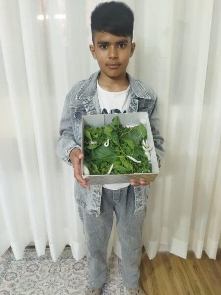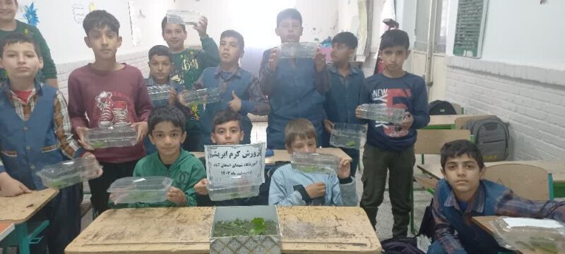 با توجه به موفقیت آمیز بودن این طرح در گامی بعدی اقدام به پرورش کرم ابریشم به عنوان نوغانداران کوچک کردیم و با همکاری جهاد کشاورزی شهرستان کرم های یک روزه تهیه کردیم. دوره پرورش کرم ابریشم از روز بیرون آمدن از تخم حدود یک ماه زمان می برد و در این طرح در مدرسه آموزش های لازم به دانش آموزان داده شد سپس به هر دانش آموز تعداد ۲۰ تا ۵۰ کرم داده شد. در این یک ماه کرم ها با برگ توت تغذیه شدند و پس از یک ماه کرم ها شروع به پیله بستن کردند. در این دوره حدود ۲۰ کیلوگرم پیله برداشت شد و در این طرح ها علاوه بر درآمد زایی برای مدرسه که از فروش پیله ها حاصل آمد دو مهارت و دو شغل به دانش آموزان معرفی و آموزش داده شد.