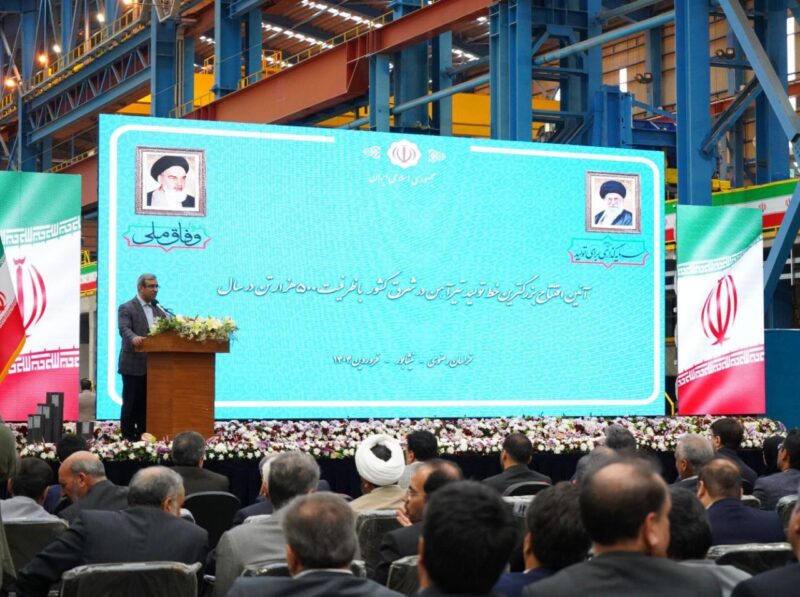با حضور دکتر عارف معاون اول رئیس جمهور، وزیر صنعت، استاندار خراسان رضوی و جمعی از مسئولین شرکت فولاد سپهر خیام نیشابور به عنوان بزرگترین کارخانه تولید تیر آهن شرق کشور با ظرفیت تولید ۵۰۰ تا ۶۰۰ هزار تن انواع مقاطع فولادی به بهره برداری رسید.