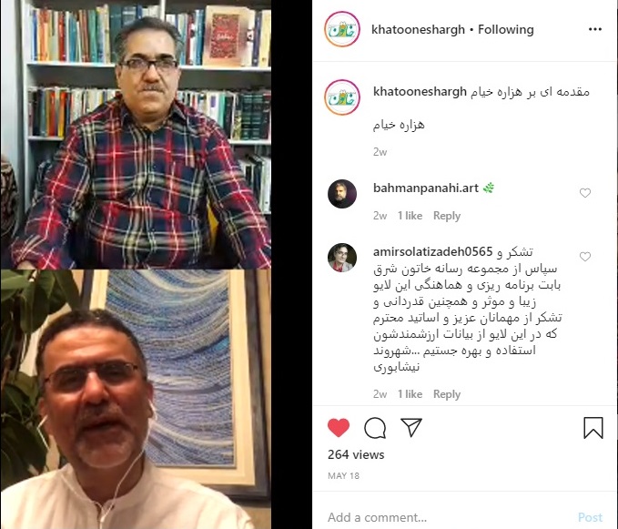 به گزارش روابط عمومی کمیسیون ملی یونسکو- ایران، حجت الله ایوبی در تاریخ ۲۹ اردیبهشت ۹۹ در پخش زنده اینستاگرامی نشریه خاتون شرق (نیشابور) اظهار داشت: برای ما ایرانیان جای افتخار است که هزاره خیام را داریم؛ هزار سال پیش شخصیتی ارزشمند و بزرگ که خیلی ها او را همه چیزدان می دانند زندگی می کرد. او در فلسفه و فقه و ادب و جبر و هندسه و کلام و فقه سرآمد روزگار خود بود و جهان این شخصیت را می شناسد.