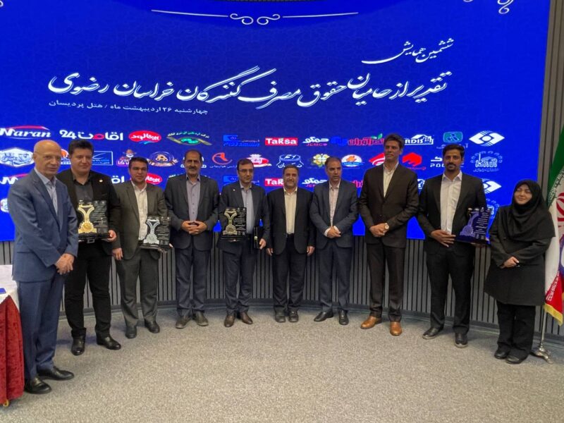 لازم به ذکر است در این همایش ازشرکتهای، افلاک الکتریک خراسان، پاک فیروزه، آبراهه گستر نیشابور، پنبه و دانه های روغنی خراسان، فرآوردههای لبنی بینالود، فضل نیشابور (روغن نباتی سه گل) و سنجش ابزارپویای آینده به عنوان واحدهای برتر حامی مصرفکنندگان با اهدای لوح و تندیس تقدیر شد.