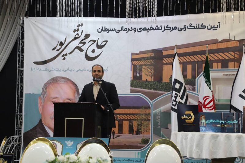 احداث مرکز جامع تشخیصی و درمانی سرطان با زیربنای بیش از هزار و ۲۰۰ متر مربع در بیمارستان سوم(عطار) دانشگاه علوم پزشکی نیشابور به همت خیر سلامت حاج محمد تقی پور با حضور جمعی از مسئولان و چهره‌های شاخص حوزه سلامت آغاز شد.