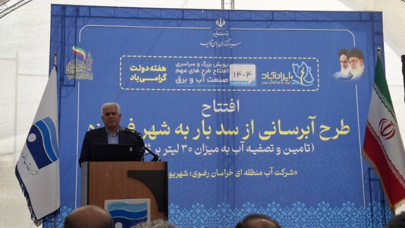 در این مراسم که در تصفیه‌خانه آب شرب شهرستان فیروزه با حضور علیرضا قامتی معاون هماهنگی عمرانی استانداری خراسان رضوی و اسماعیل نصرآبادی فرماندار فیروزه برگزار شد، محمدعلی نعمت‌نژاد مدیرعامل شرکت آب منطقه‌ای خراسان رضوی گفت: امروز ۲ طرح شرکت آب منطقه در قالب پویش بزرگ و سراسری افتتاح طرح‌های مهم صنعت آب و برق ایران آباد در شهرستان نیشابور و فیروزه به بهره‌برداری می‌رسد که هر دو بخشی از طرح آبرسانی از سد بار است.