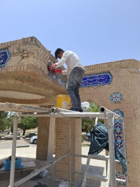 وی گفت: در این طرح مرمتی پس از آسیبشناسی ابتدا عایق پشت بام جهت جلوگیری از نفوذ رطوبت به بنا و پشت کتیبهها انجام شد سپس هفت کتیبه کاشی آسیب دیده بر اثر عوامل جوی و انسانی، که شامل اشعار یغما است مجدد در کارگاه کاشی سازی سنتی تهیه و نصب شد. همچنین تعویض آجرهای فرسوده انجام و بندکشی بخش های آسیب دیده در بدنه بنا در حال انجام است.