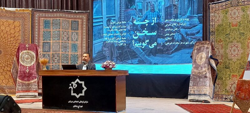 دکتر محمود اسعدی استاد دانشگاه تهران و دبیر همایش چهرههای ماندگار دیگر سخنران این همایش با تقدیر از رئیس اتحادیه فروشندگان فرش نیشابور برای برگزاری این همایش گفت: فرش یک رسانه و عصاره فرهنگ و هنر و تمدن ایران است و سمبلها و نکات برجسته تمدن ایرانی در نقوش فرش ما تبلور یافته است.