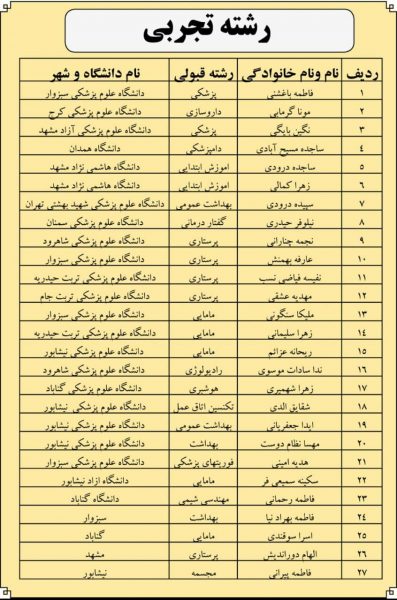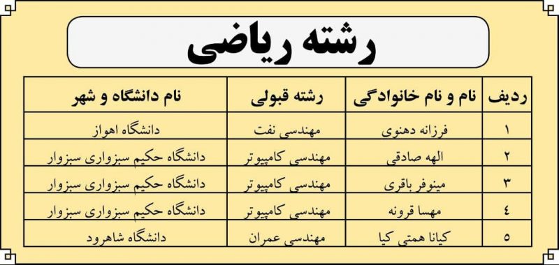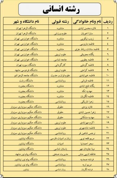 اسامی پذیرفته شدگان دبیرستان نمونه فاطمه زهرا (س) در دانشگاهها و موسسات آموزش عالی کشور سال تحصیلی ۹۸-۹۹