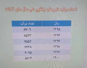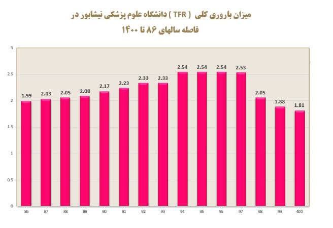وی افزود: نرخ باروری کل یا نرخ فرزندآوری میانگین تعداد فرزندانی است که یک زن در طول زندگی اش به دنیا می آورد و نرخ باروری کلی شهرستان نیشابور طی سالهای اخیر با روند کاهشی همراه بوده است.