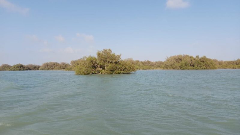 برای دیدن دلفینها و گردش در جنگل حرا سوار قایق میشویم، راهنمایمان توضیح میدهد که در زمان بالا آمدن آب دریا ماهیهای ساردین که غذای مورد علاقه دلفینها هستند به کنار جنگل حرا میآیند و در آن زمان دیدن دلفینها راحتتر است.