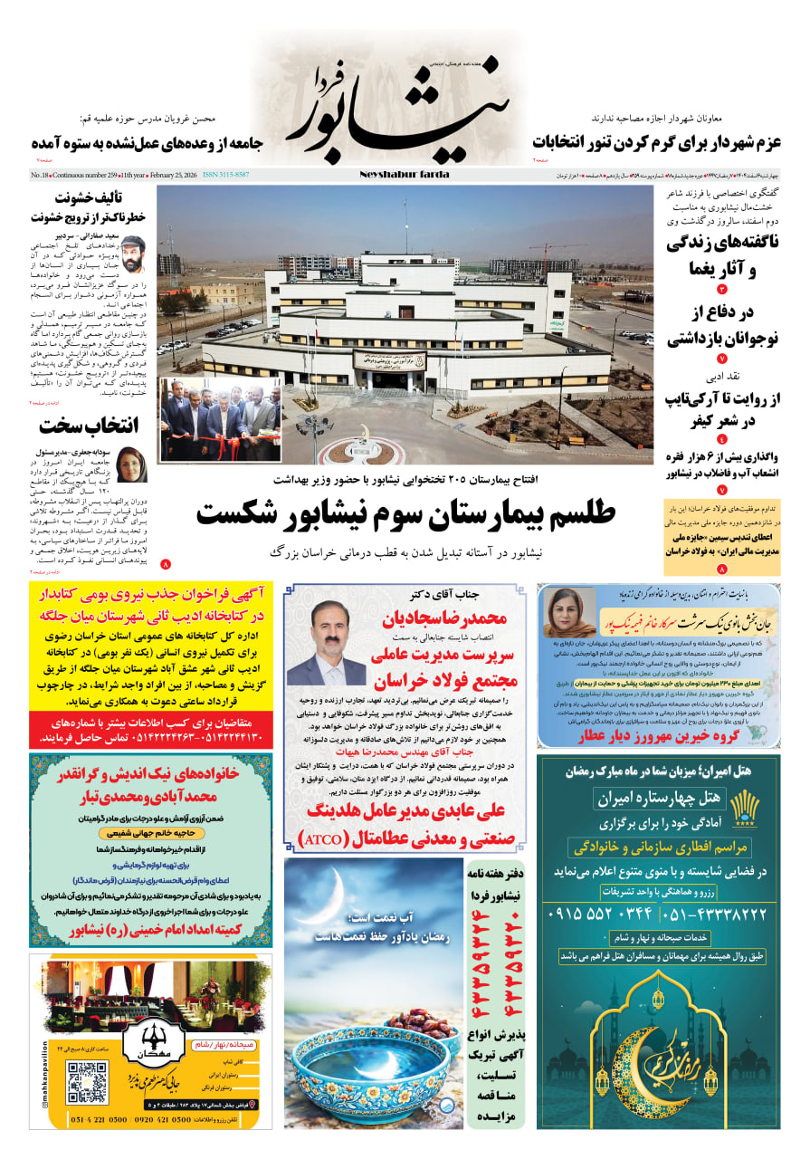 جمعه, ۸ اسفند , ۱۴۰۴ Friday, 27 February , 2026