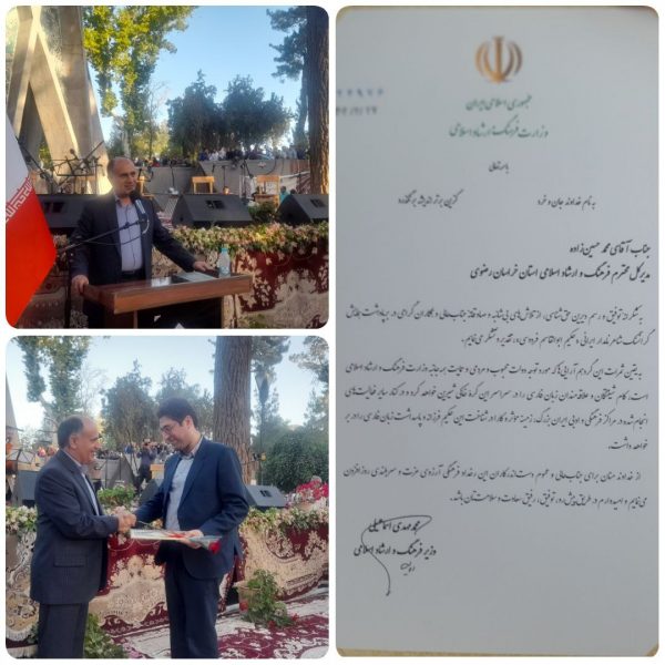 در این مراسم دکتر شالویی با اهدای لوح تقدیر محمد مهدی اسماعیلی وزیر فرهنگ و ارشاد اسلامی به محمد حسین زاده مدیر کل فرهنگ وارشاد اسلامی خراسان رضوی از خدمات وی برای بزرگداشت مفاخر این استان تجلیل کرد.